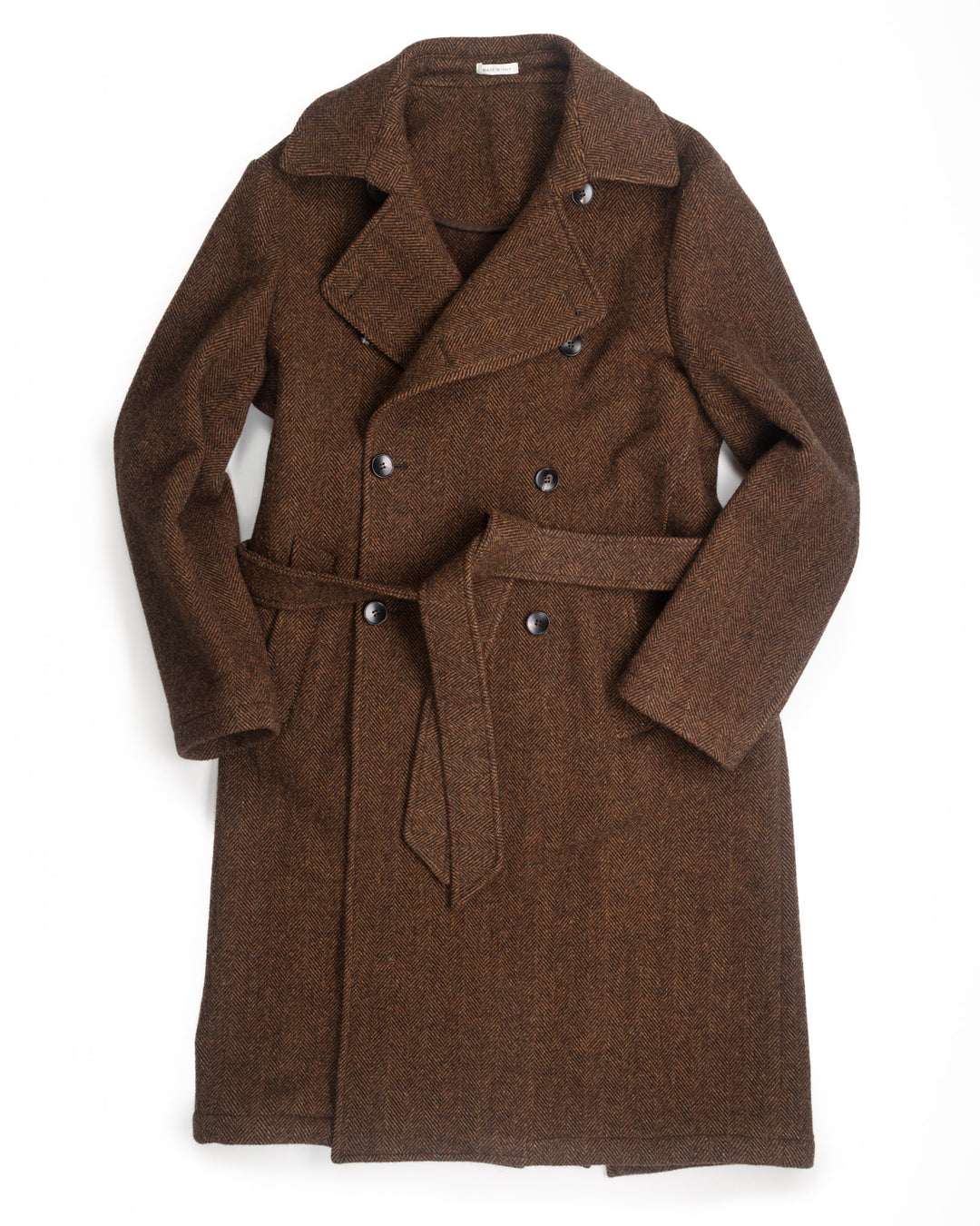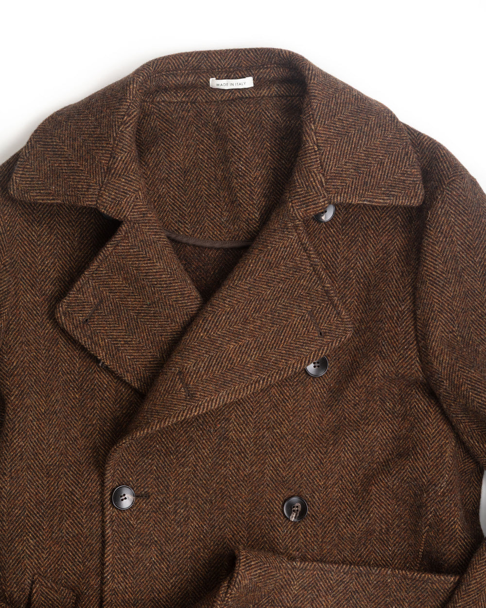 Double Breasted Coat in Brown Herringbone Wool