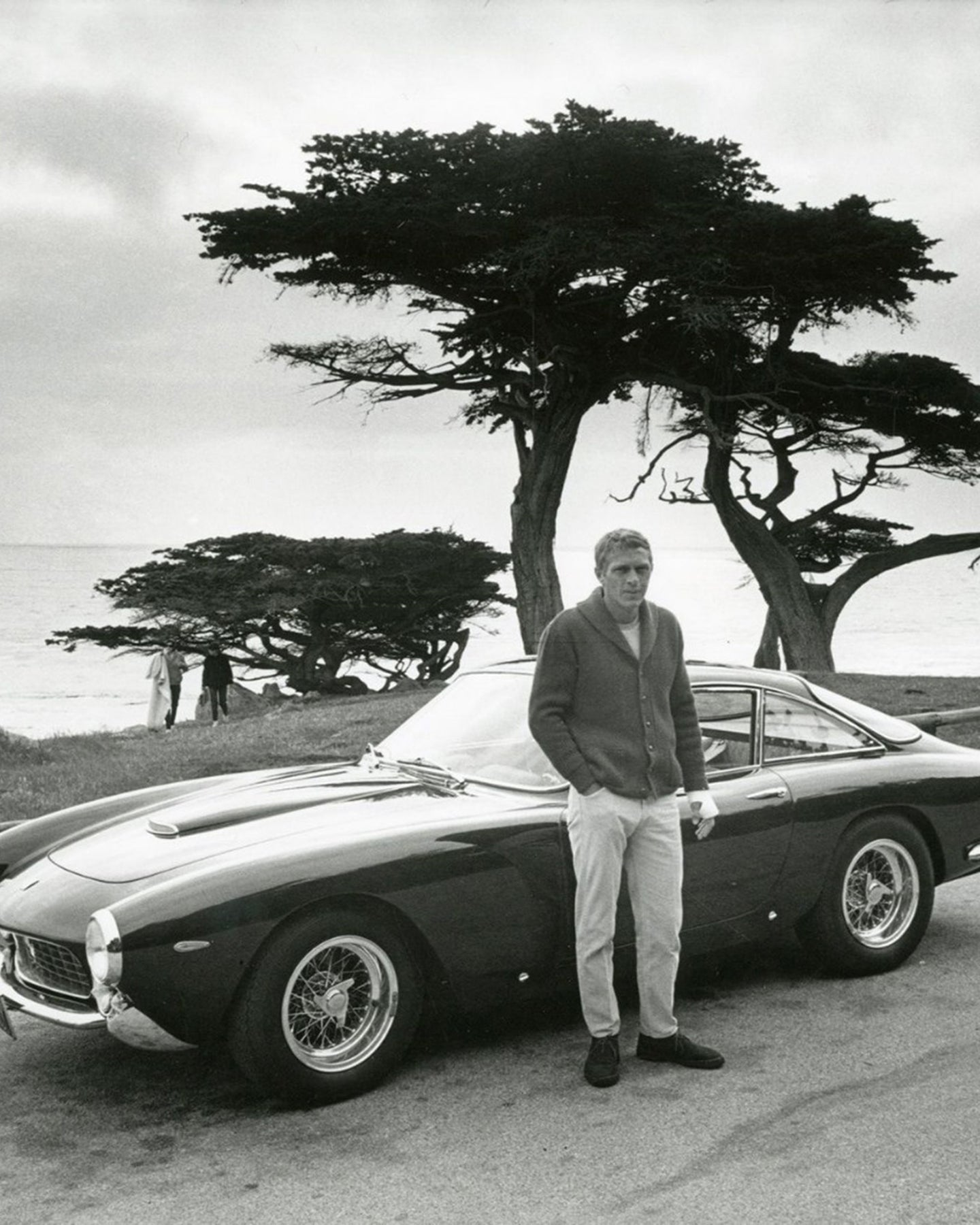 This Shawl Cardigan is the same piece commissioned by and worn by Steve McQueen in a now famous photo shoot in California, stood beside McQueens car, and photographed by William Claxton.