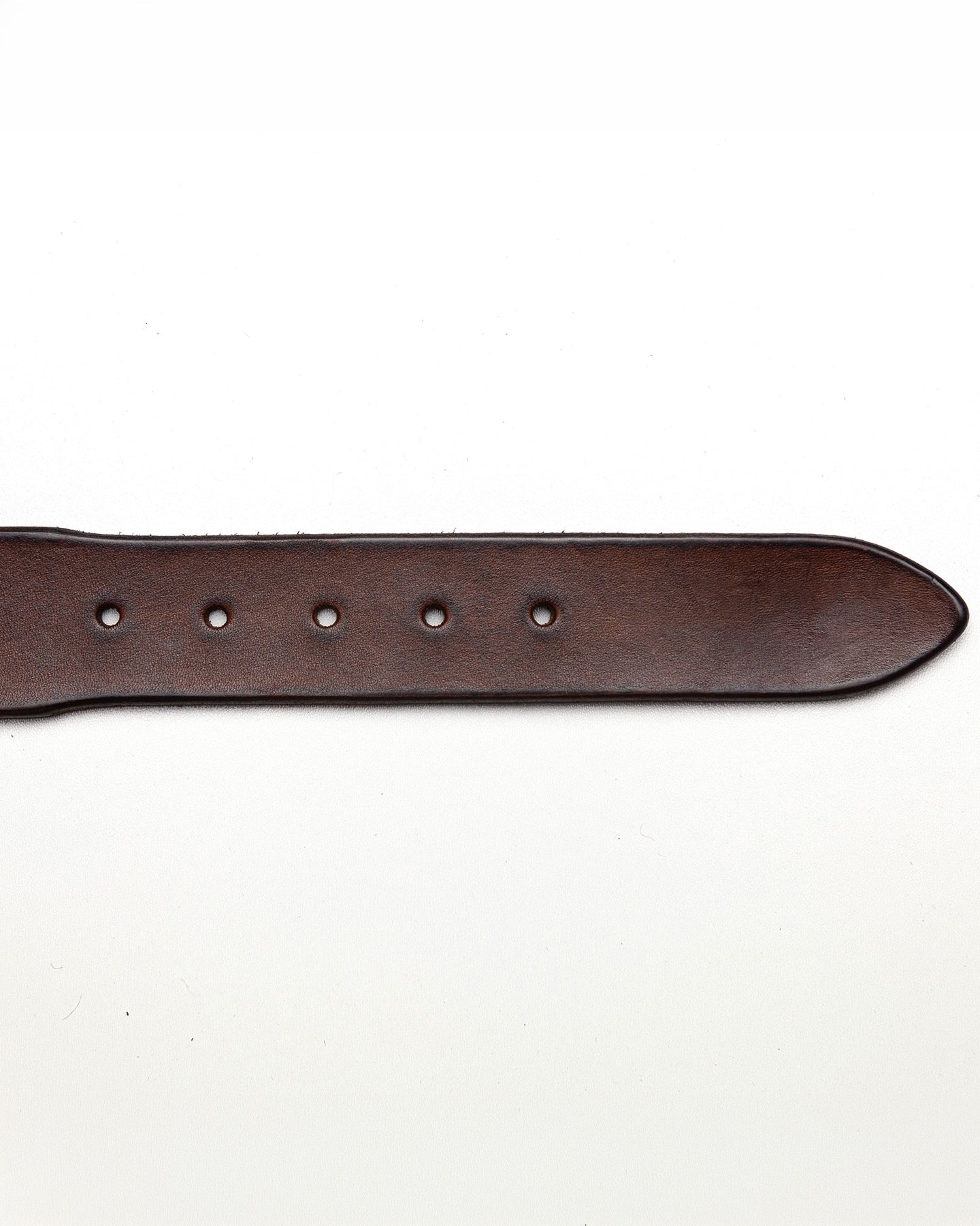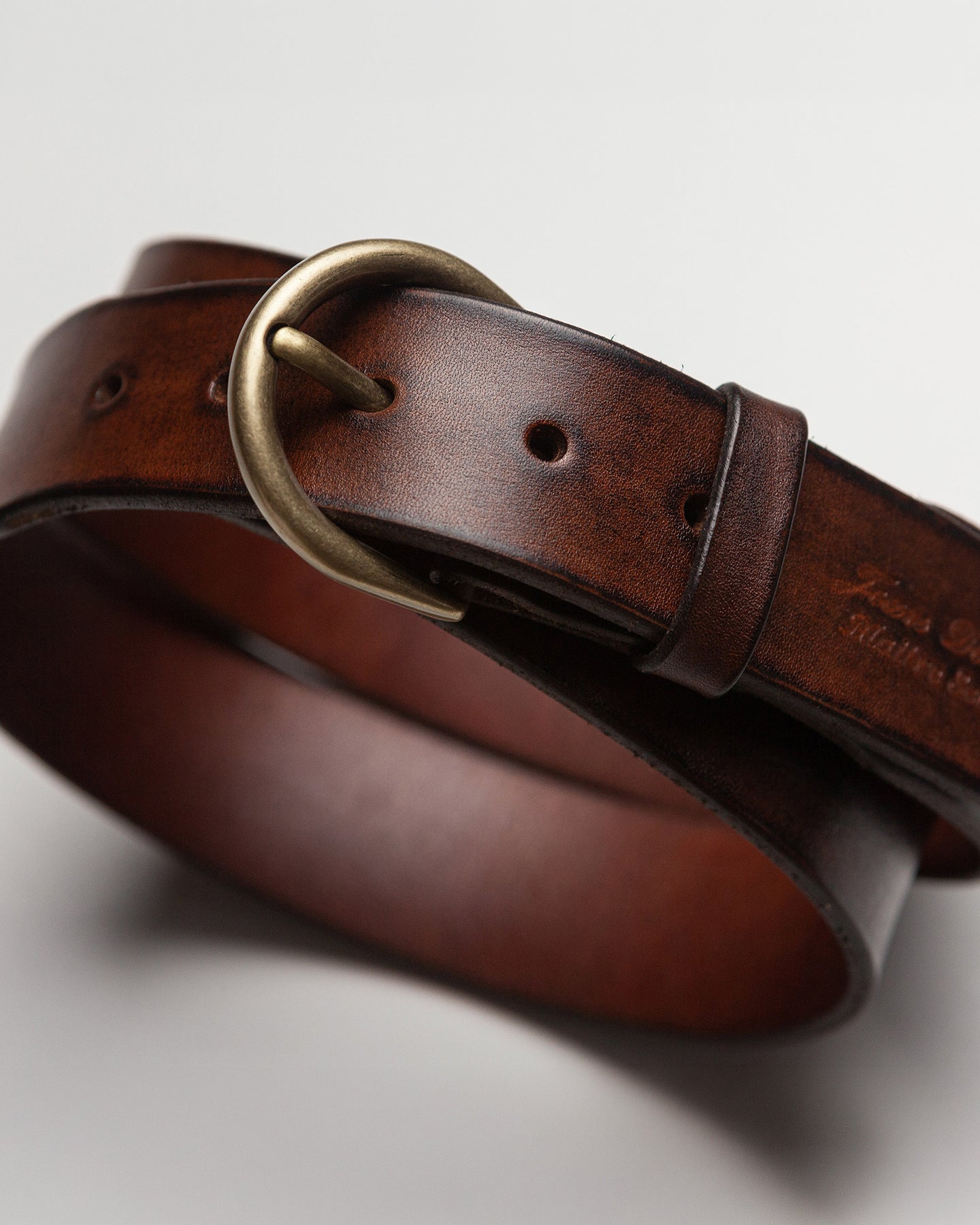 One of the nicest belts we've seen here gentlemen. The most magnificent antique brown colour, contrasted with the solid brass buckle makes this both a simple classic design, that has touch of the rugged about it too.