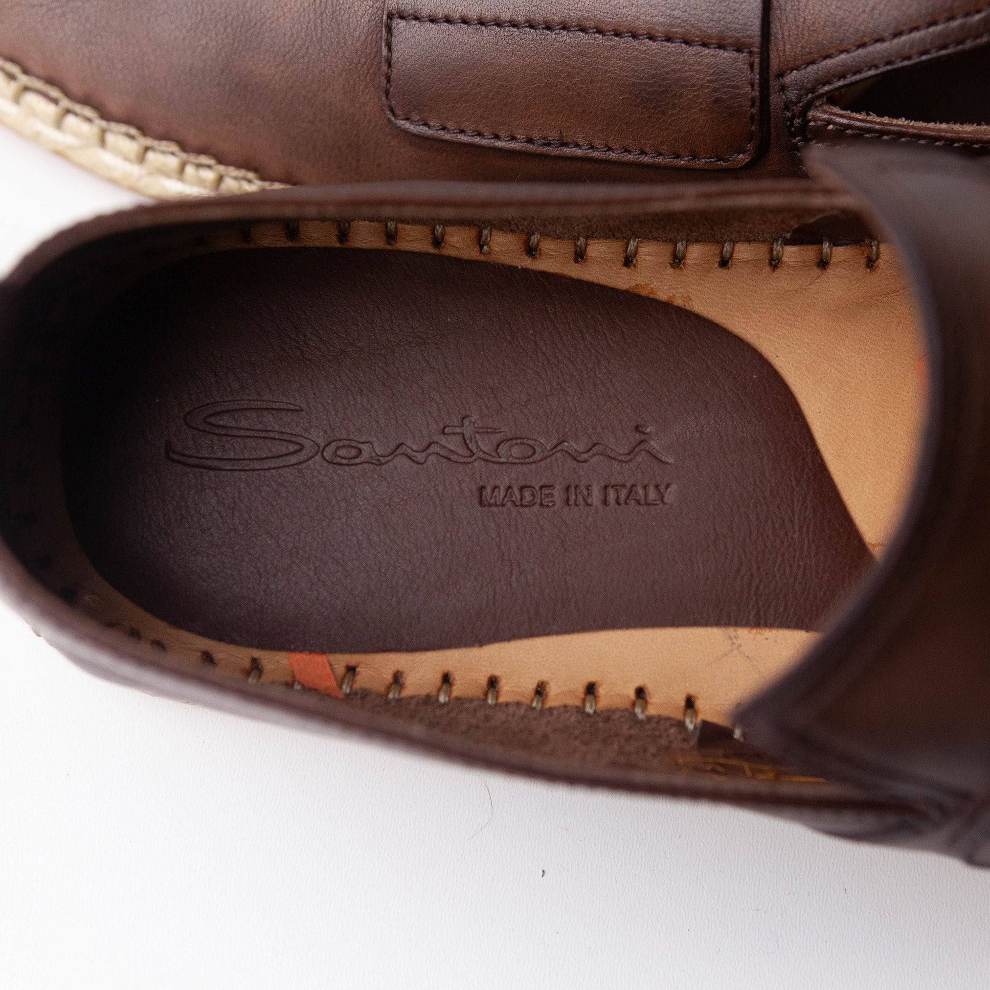 A stunning pair of never-worn brown leather espadrilles from ther Italian shoemaker Santoni.  New condition and in their original box.