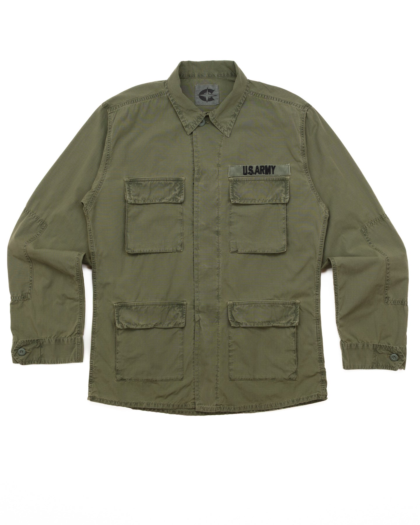 Military inspired all the way, but with a revised fit that's not your usual over-sized cut. The fabric is a cotton ripstop which adds a subtle contemporary detail to an otherwise vintage military style.