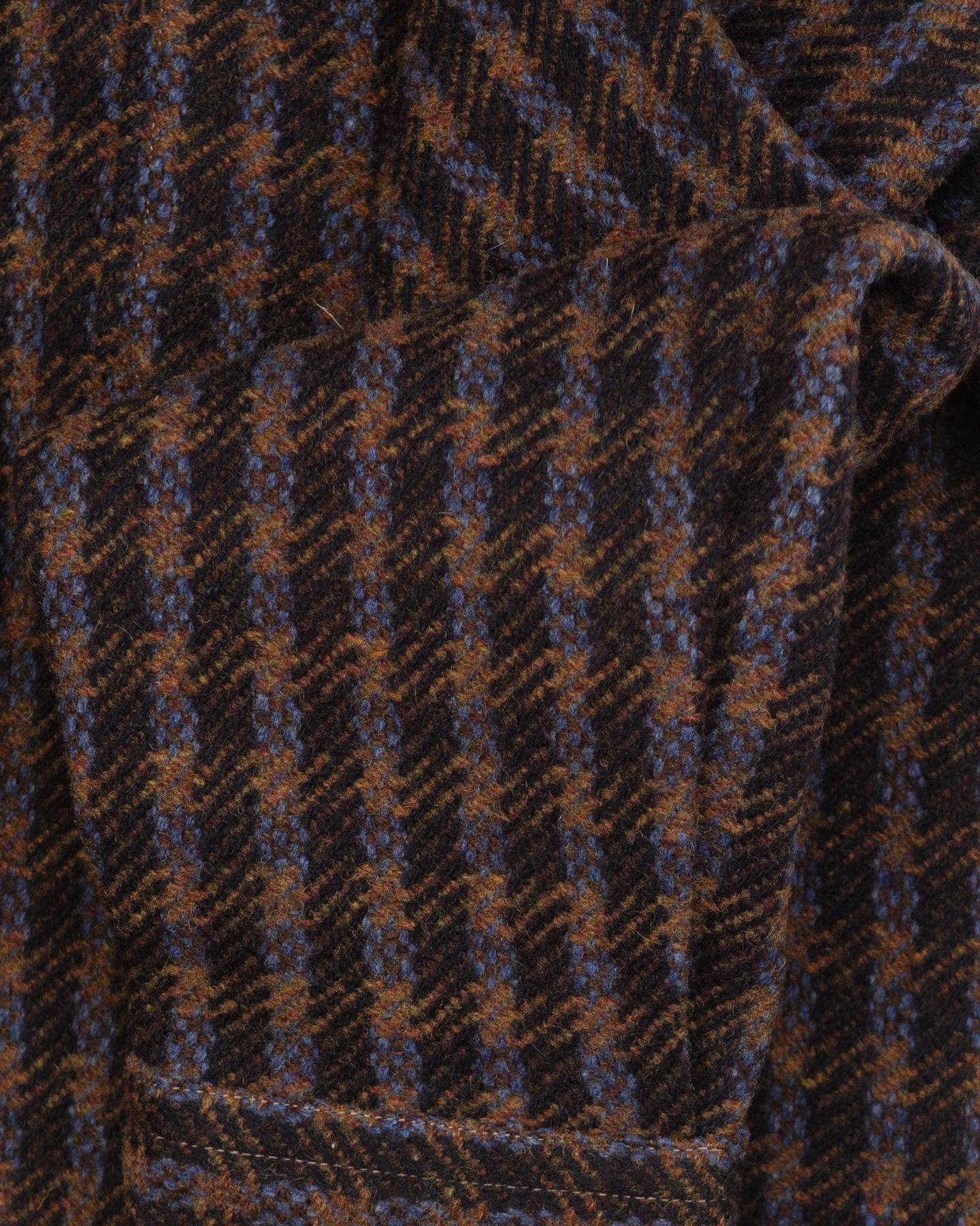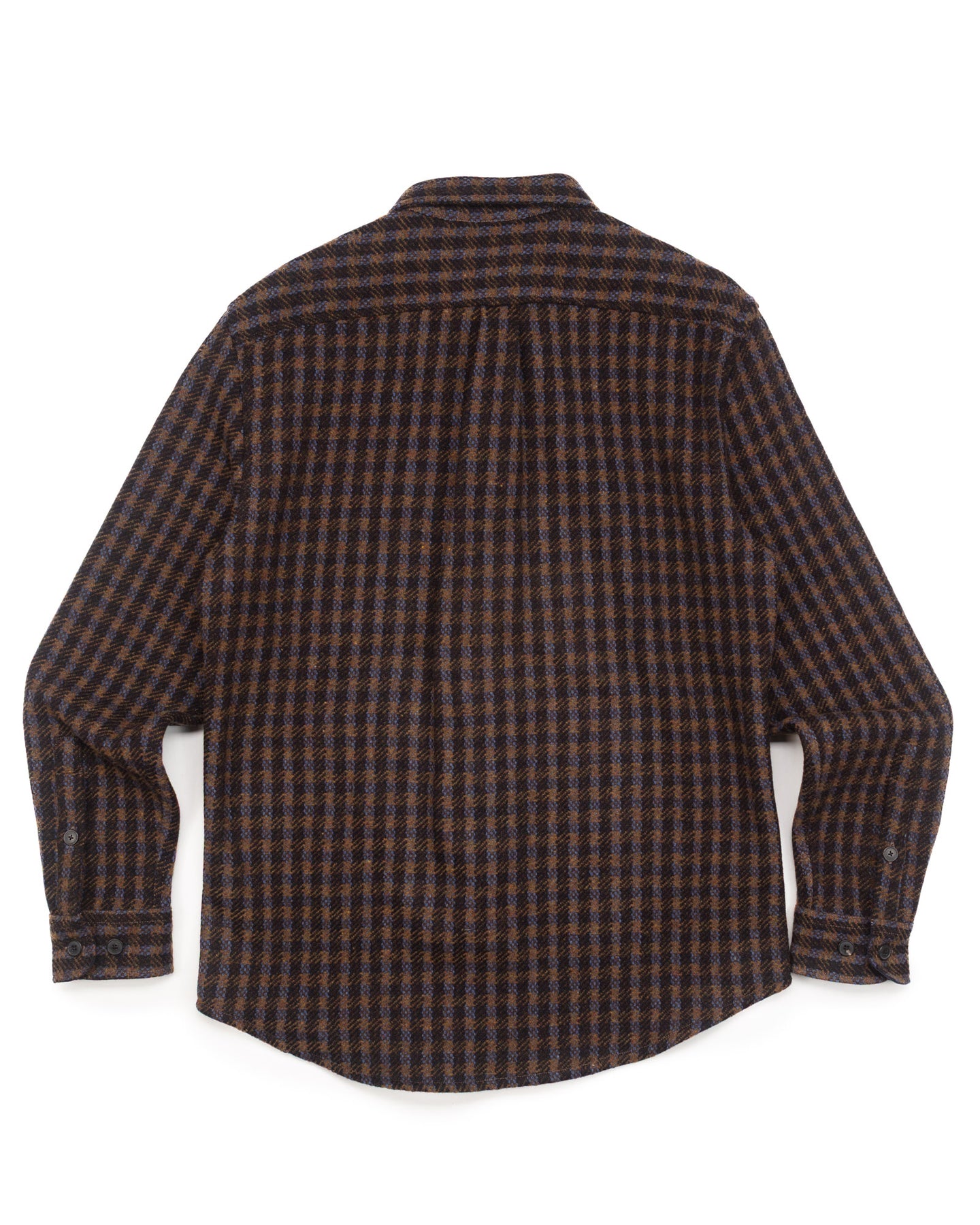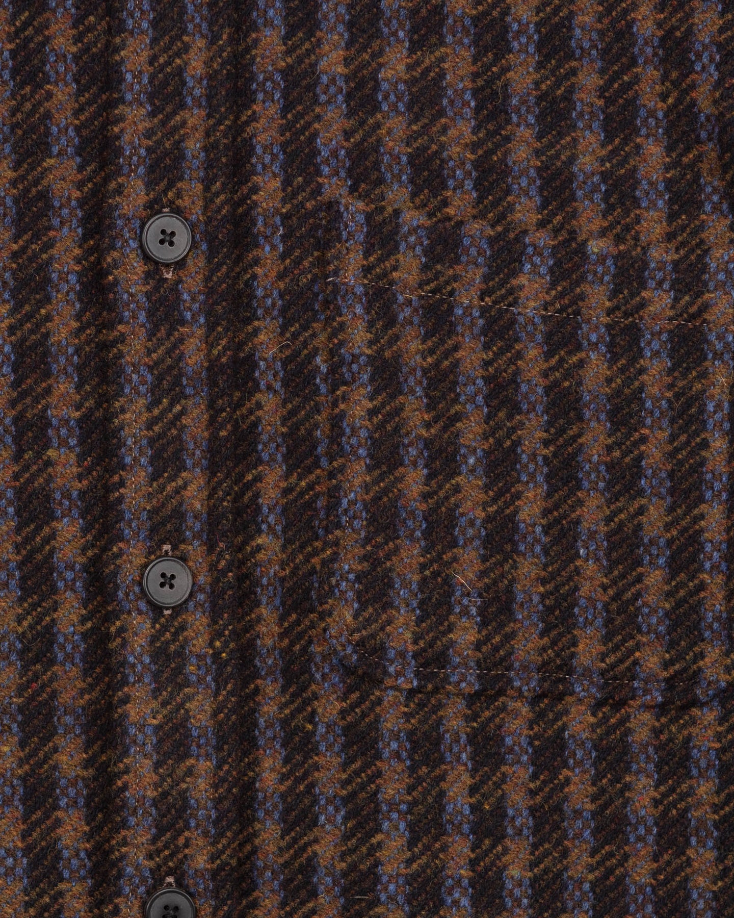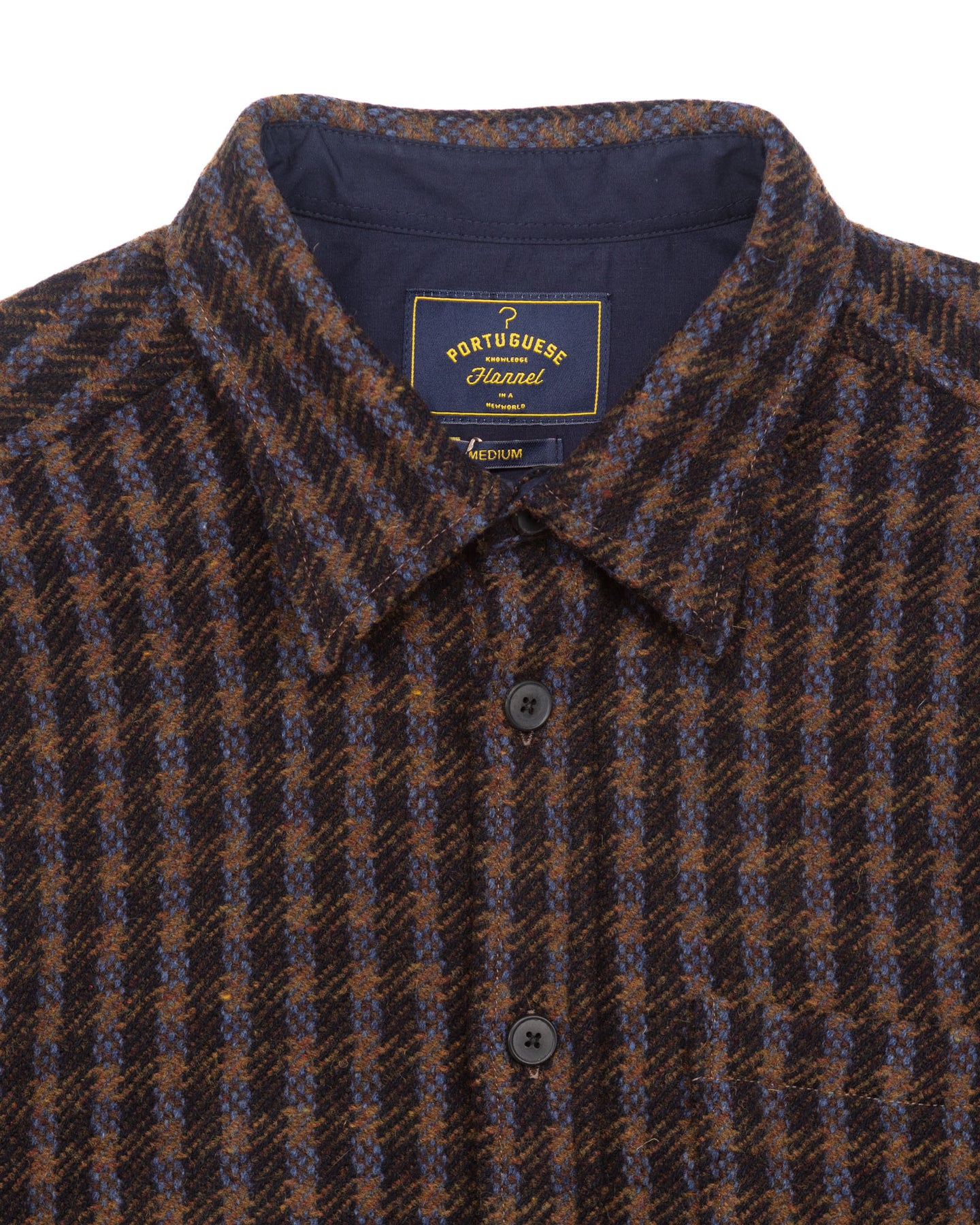 A stunning looking merino wool shirt with a deep navy and brown houndstooth pattern.