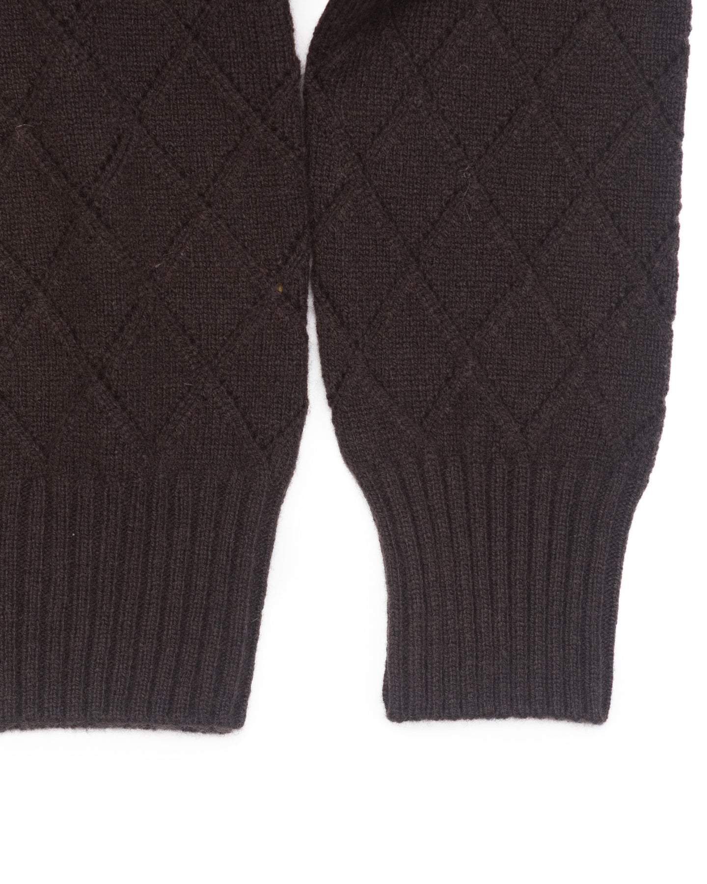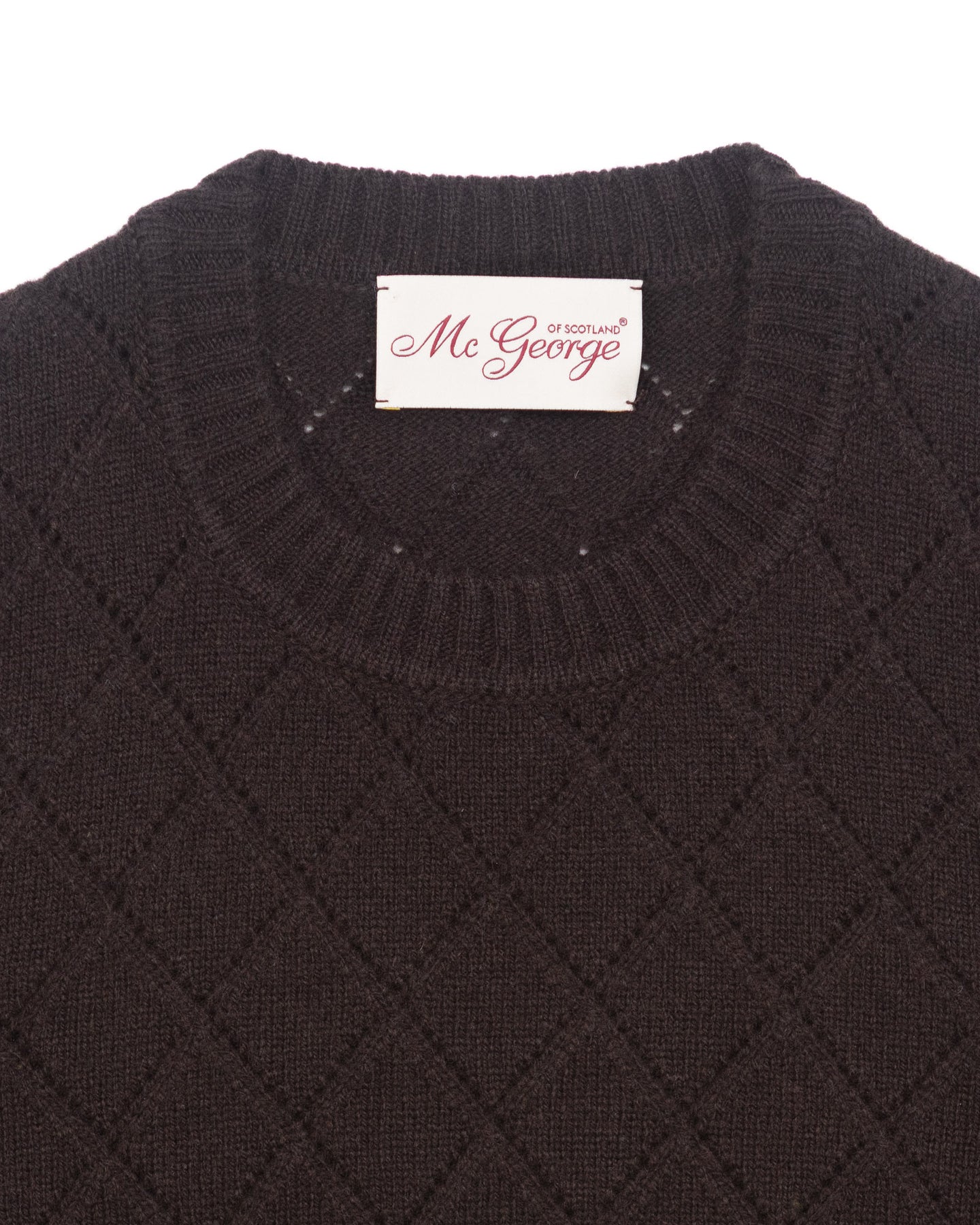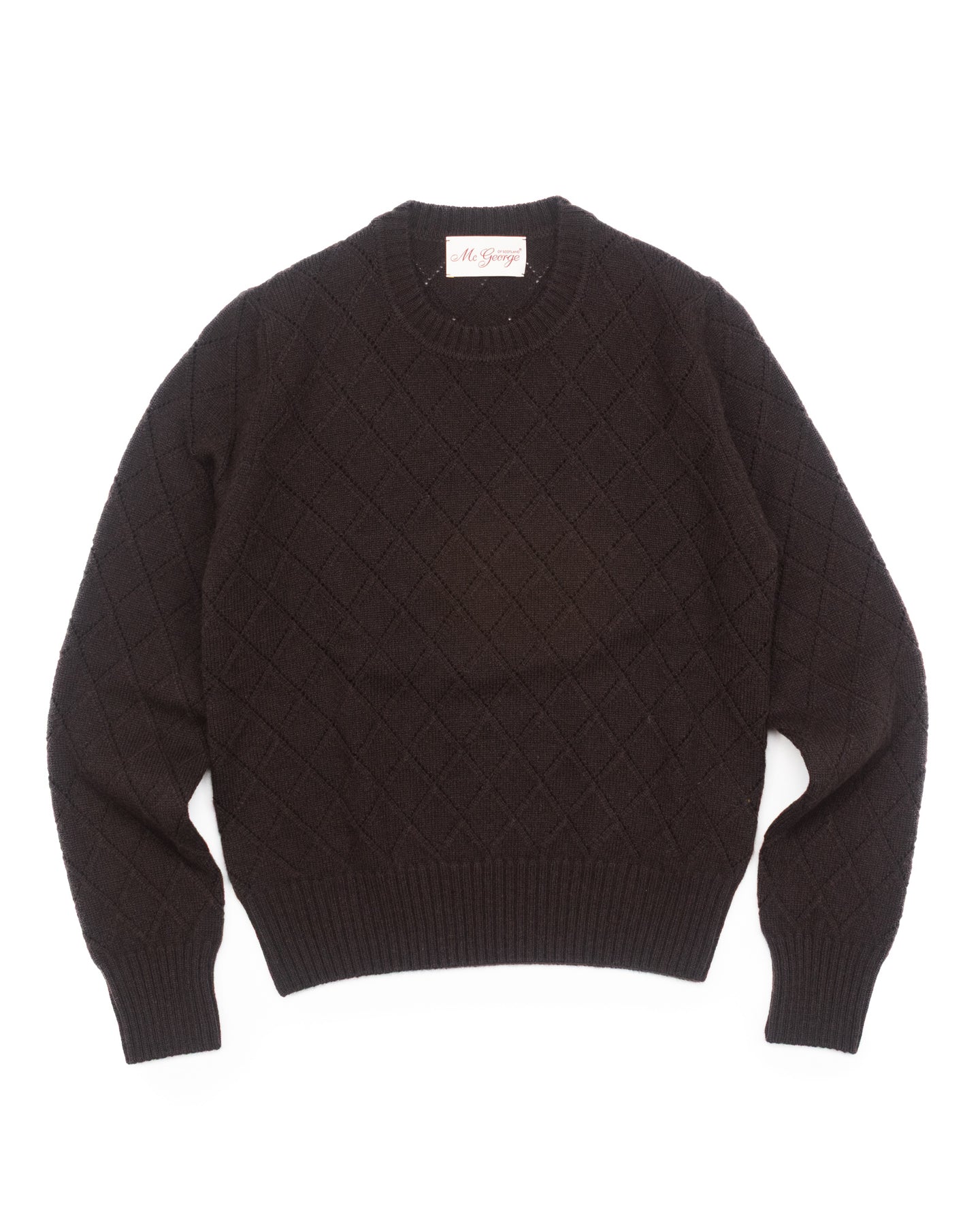Crafted from a soft knit fabric featuring an elegant diamond weave, this deep brown crewneck delivers both comfort and style for daily wear. The textured pattern creates a lightweight feel while the rich moka tone adds versatility to any wardrobe. Perfect for layering or wearing solo, it's the piece every collection needs.