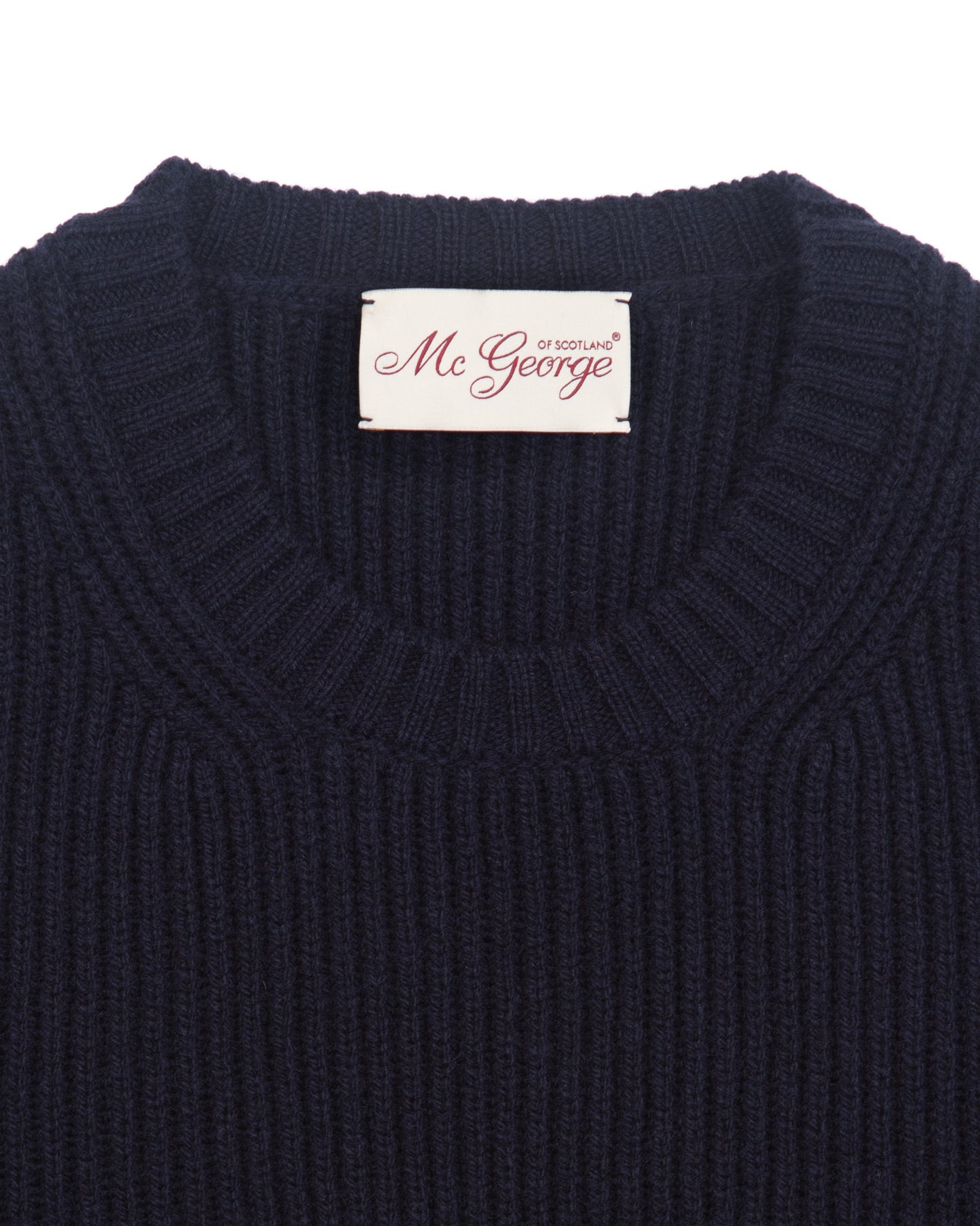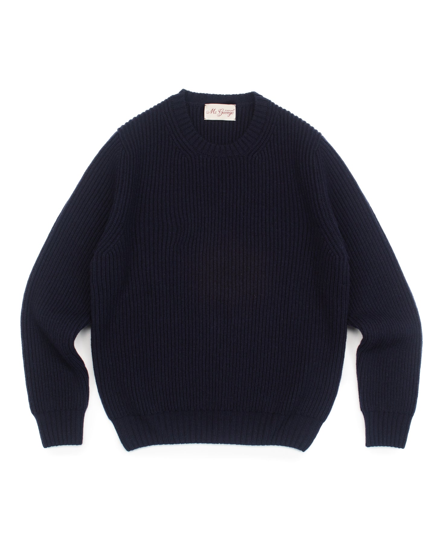 A ribbed crewneck sweater is the workhorse of the winter knitwear wardrobe. Worn dressed up or down, it's a style that remains today as timeless as ever. McGeorge have created a stunning crewneck here, with a vertical English Rib knit, made from a Virgin Wool and Cashmere blend.