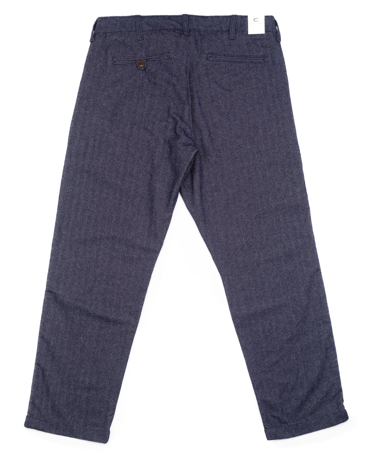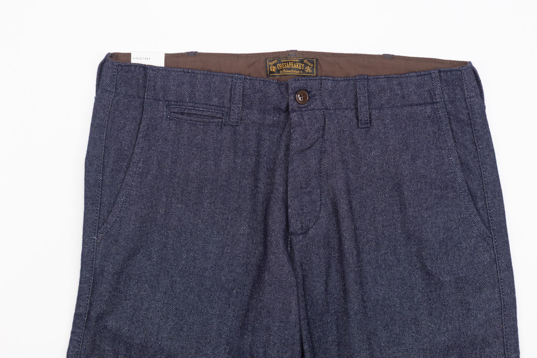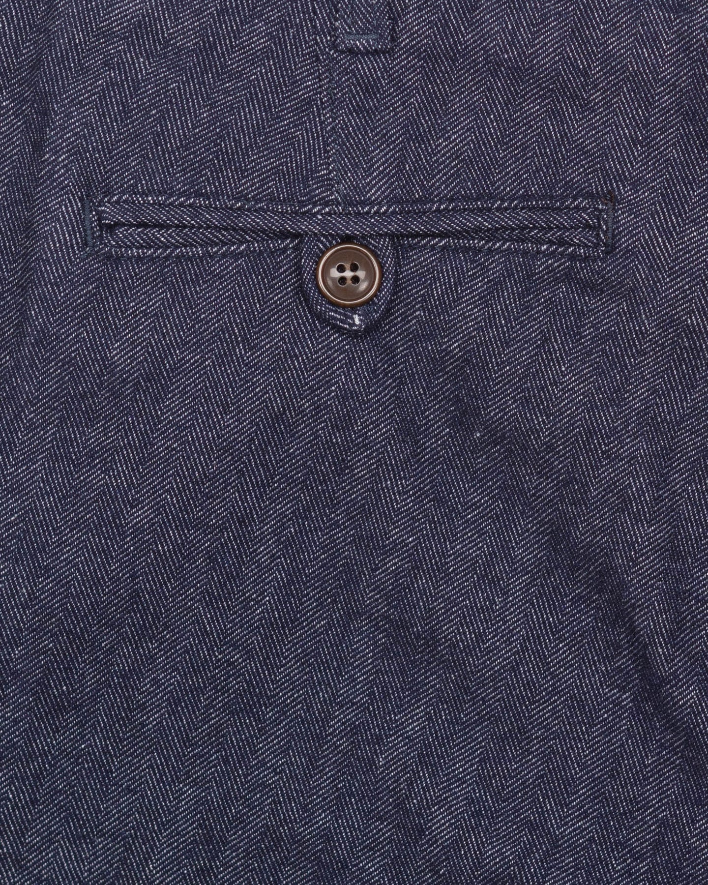 As the name suggests these wonderful looking chinos in Wool blend herringbone tweed have a straight leg with a slightly relaxed fit. With a mid rise, these trousers have are very comfortable to wear with a nice clean silhouette. They are garment dyed giving the fabric a slightly worn-in look.
