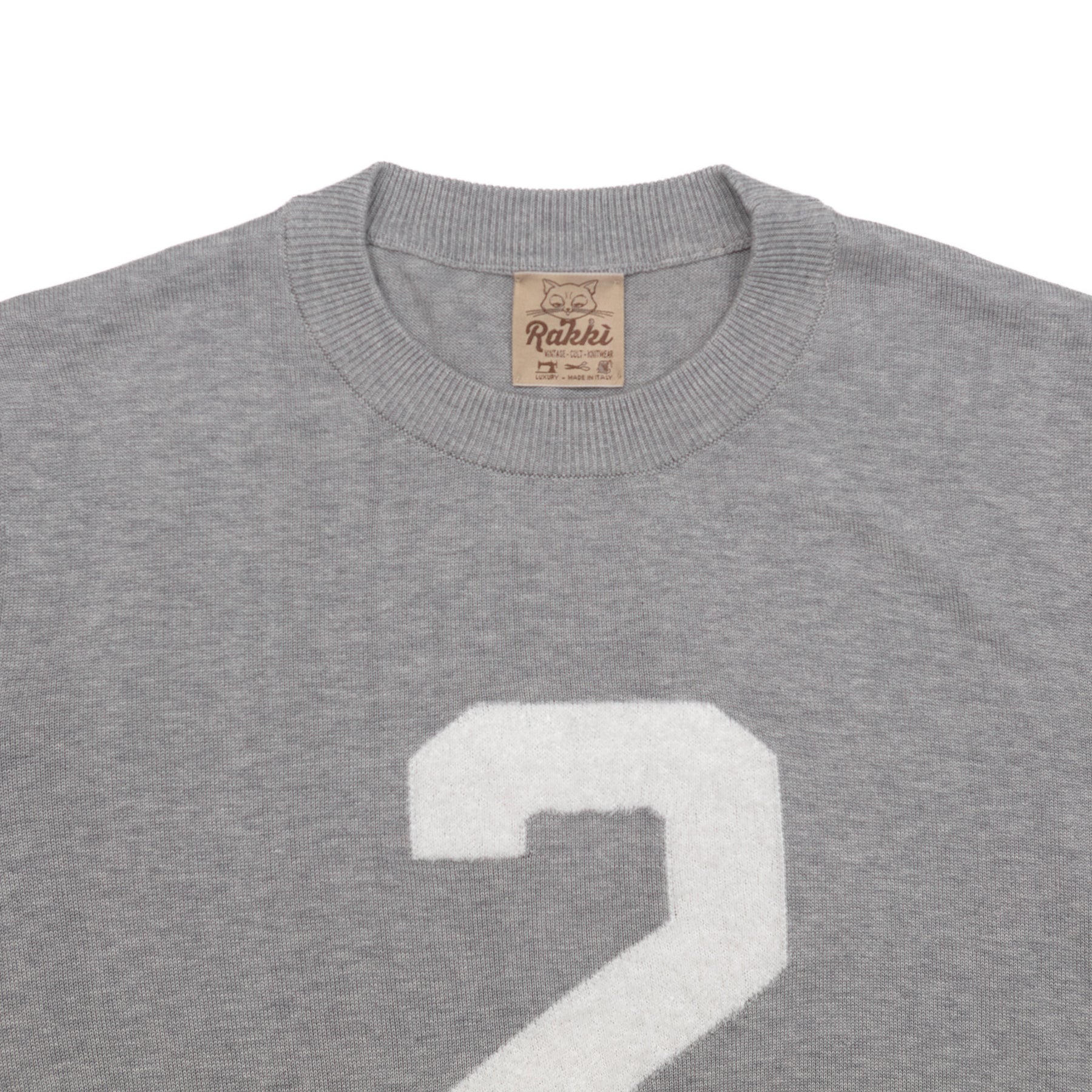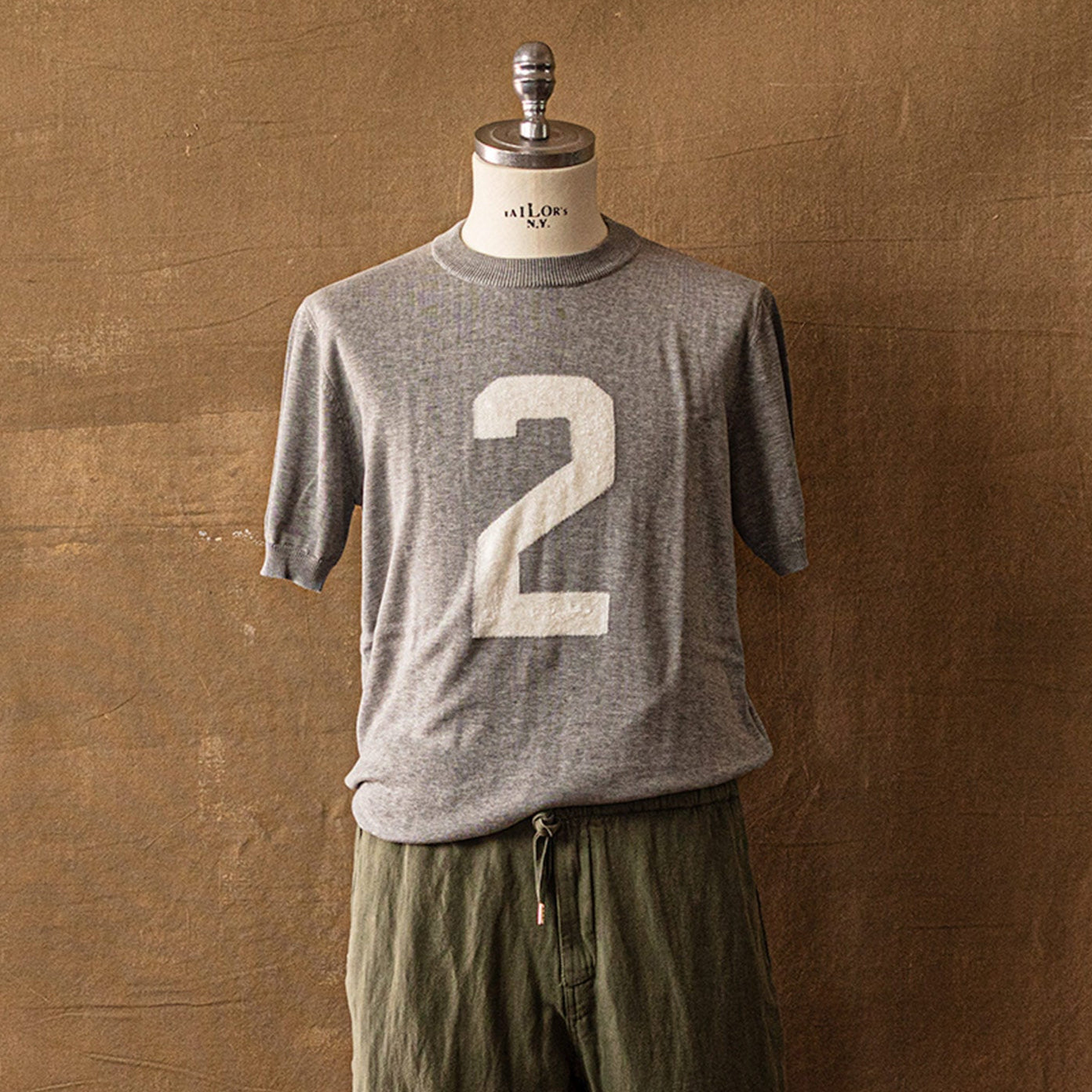American knitted T-shirt with unique and unmistakable details combined by the two yarns employed: cotton in the body and in the finishes - collar, cuffs and bottom and chenille in the inlay.