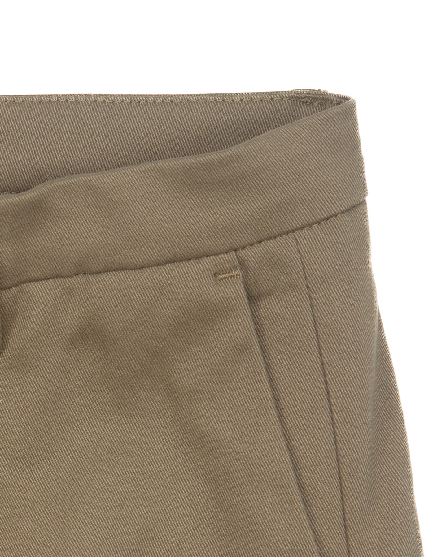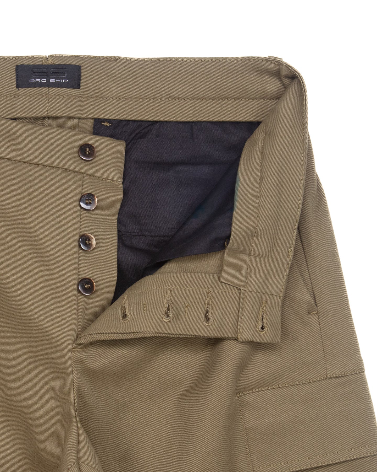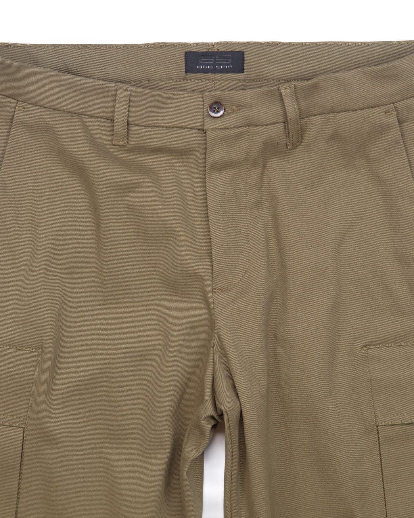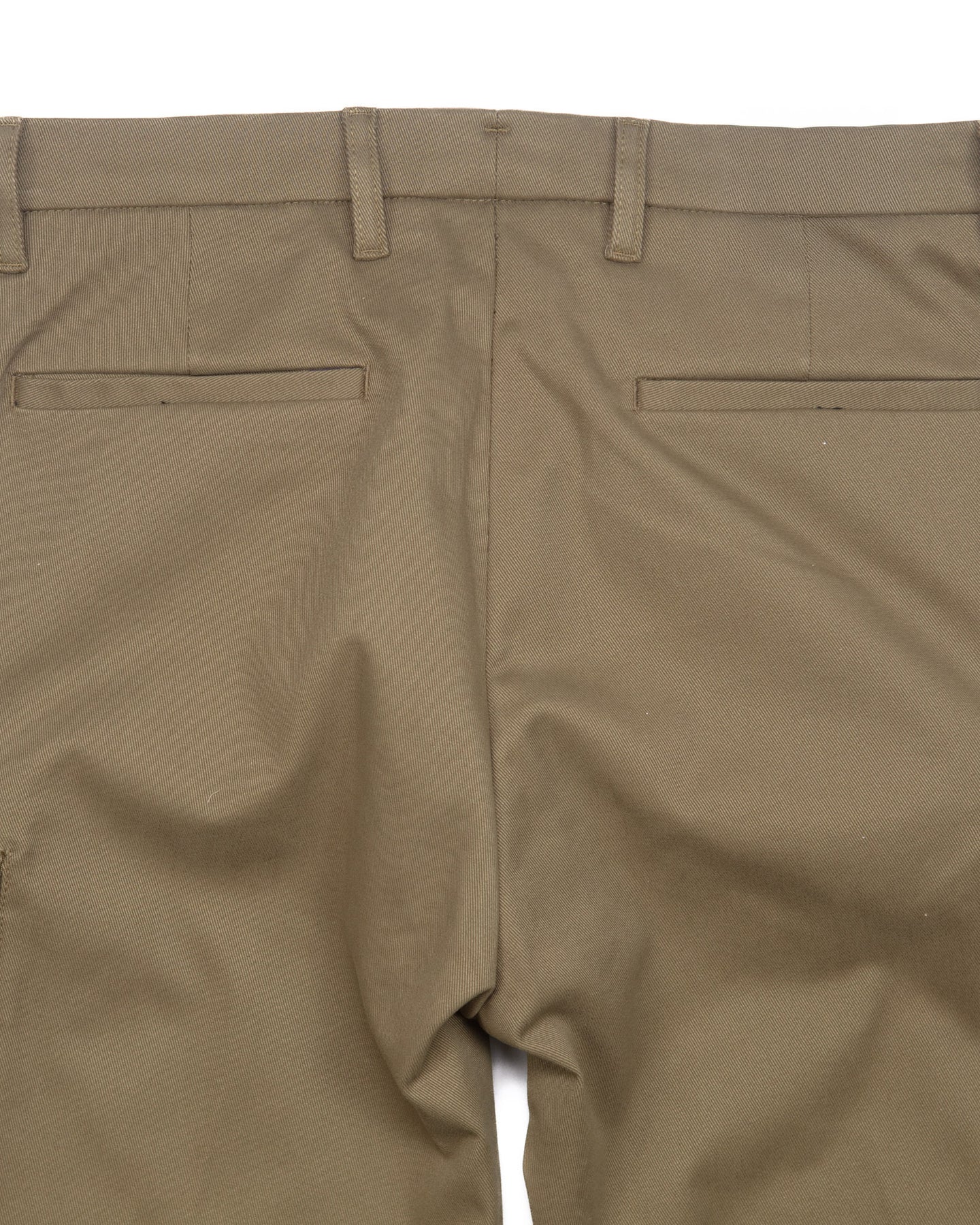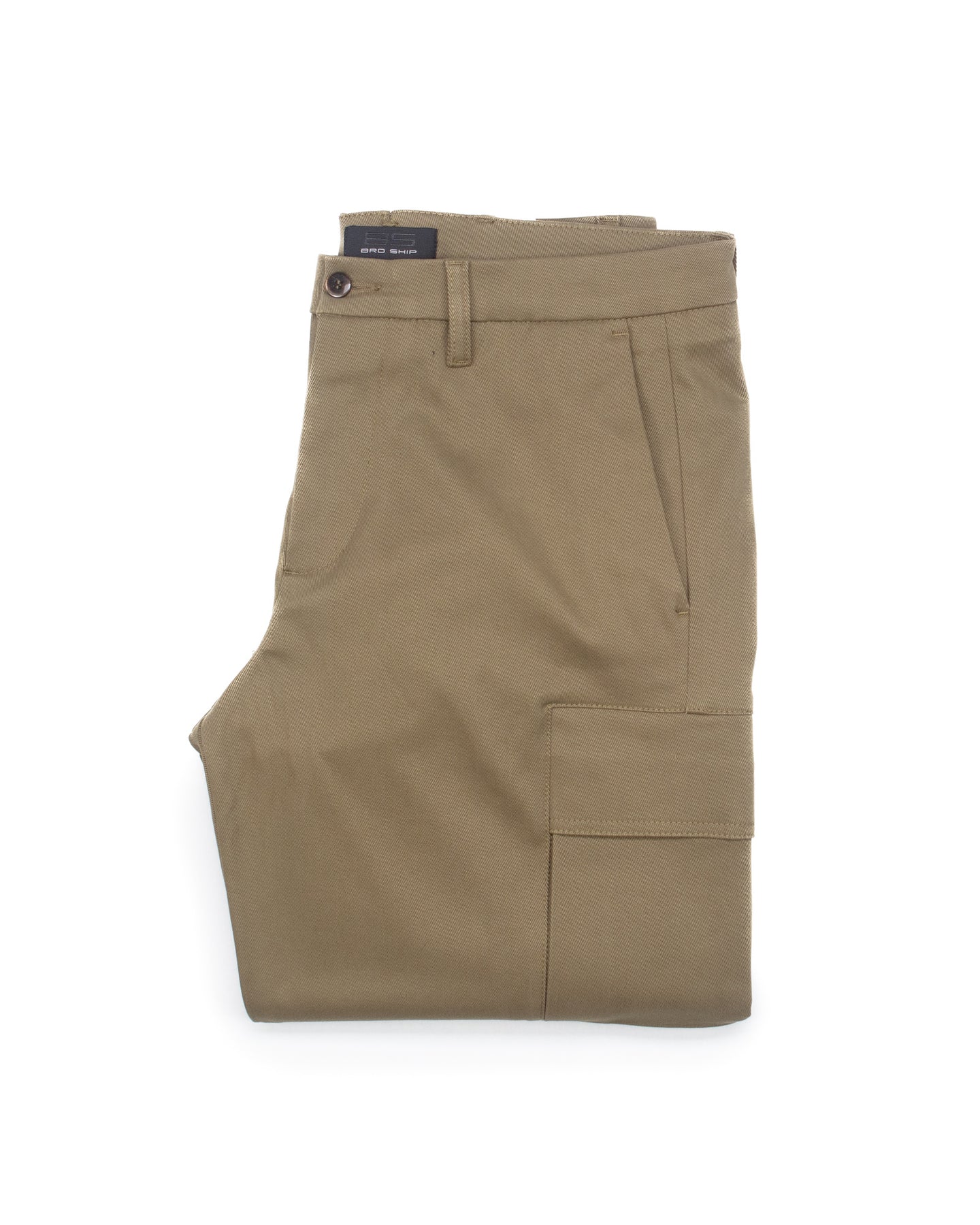 A fatigue trouser with a contemporary feel to it.  A more generous cut with a relatively straight leg all the way through.