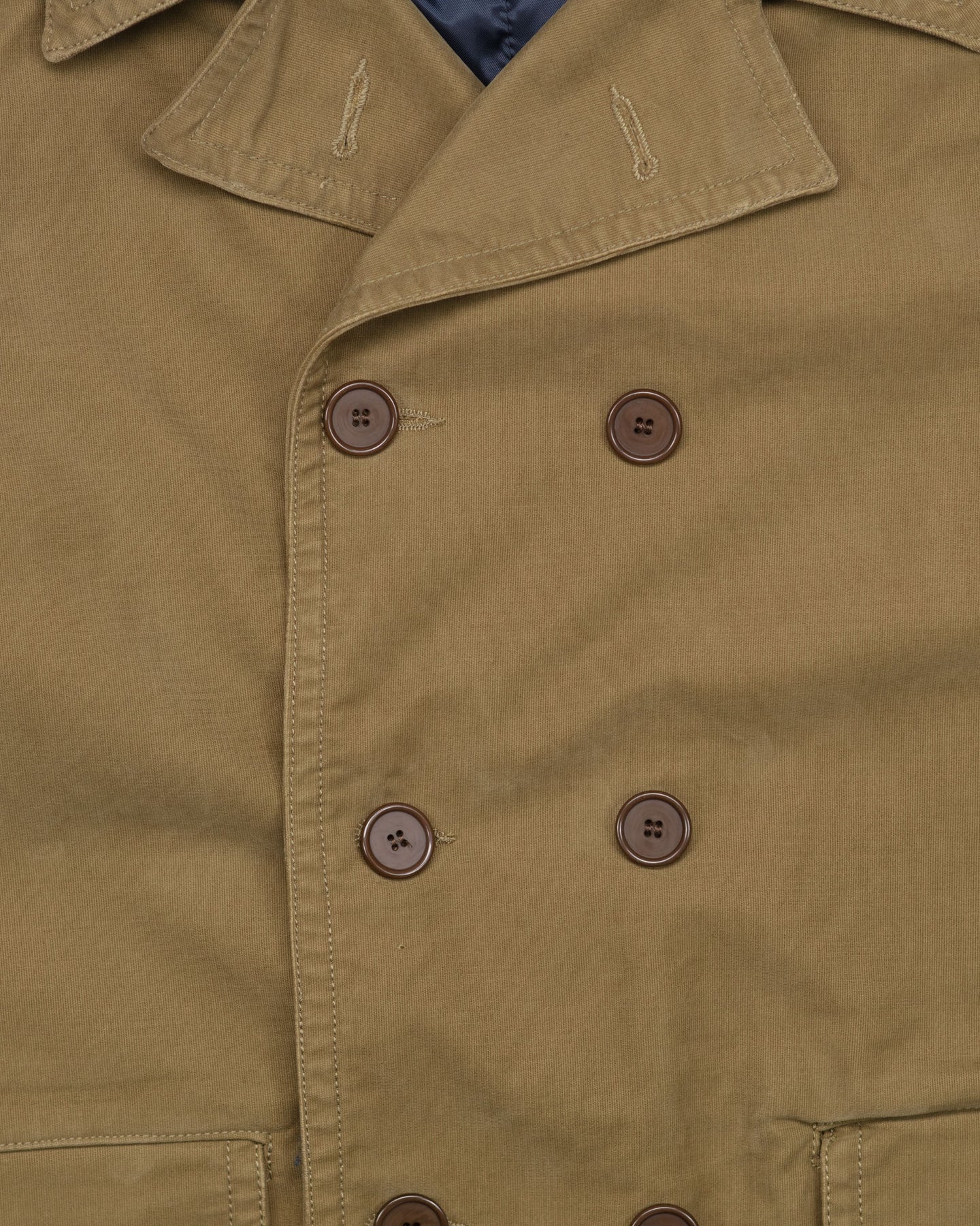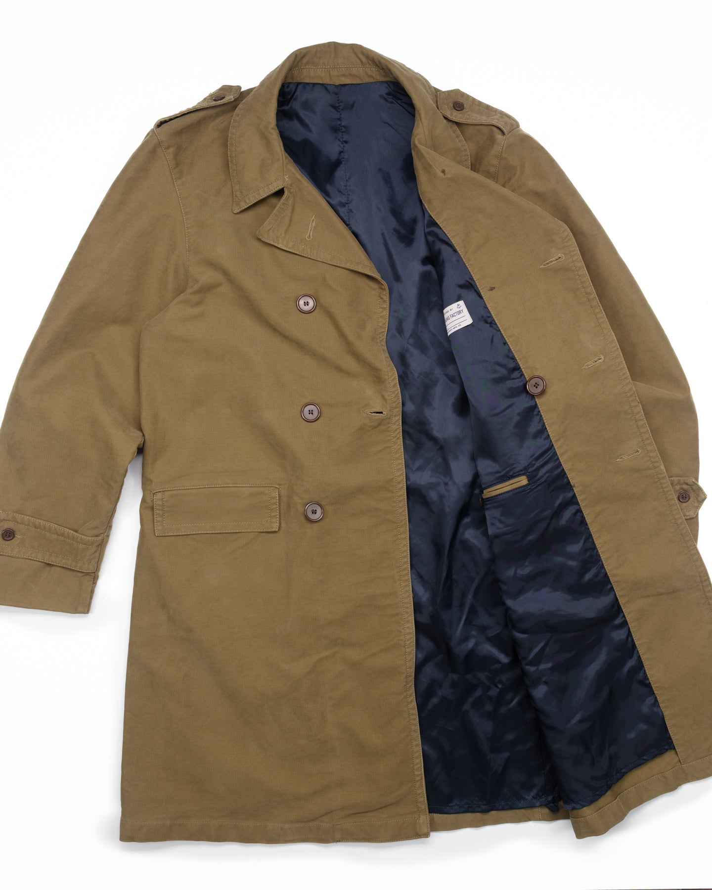 A stunning interpretation of a Naval Officer's Trench Coat, in a faded green cotton.