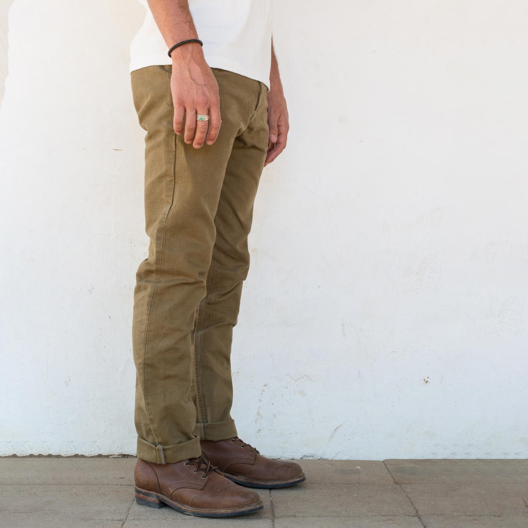 The 14 Ounce Slub Workers Chino is one of the toughest chinos we make. The fabric is a 14 ounce oxford weave from Japan. It has a ton of texture and depth due to its heavy slub yarns, and it’s amazingly durable due to its heavy weight. These chinos are ready for anything and built to last. Easily one of our favourite pieces, the 14 Ounce Slub Workers Chino is sure to become one of your favourites as well.
