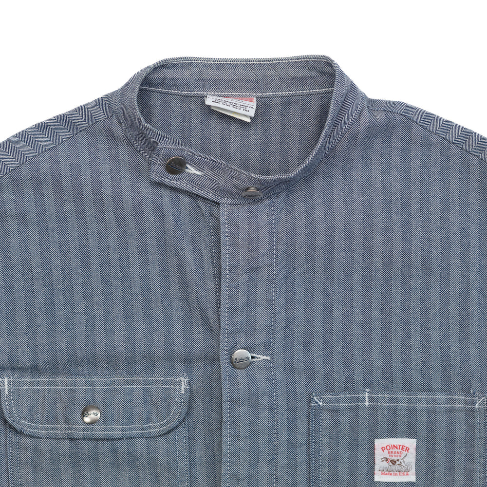 In great condition, this works jacket in a lightweight herringbone twill light blue fabric is a great looking piece.