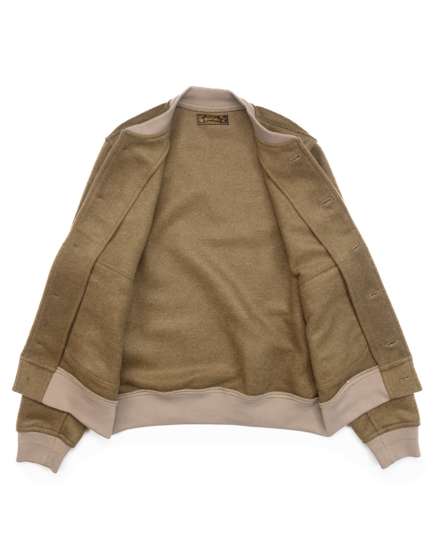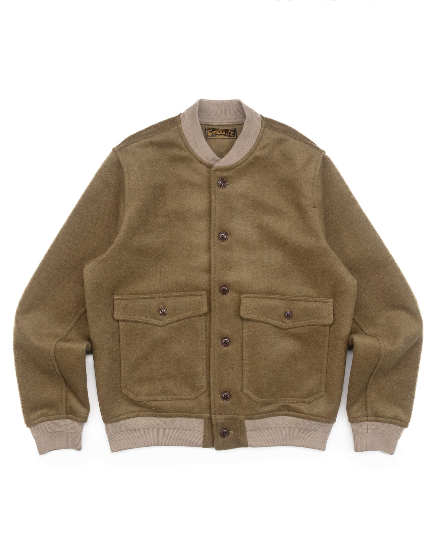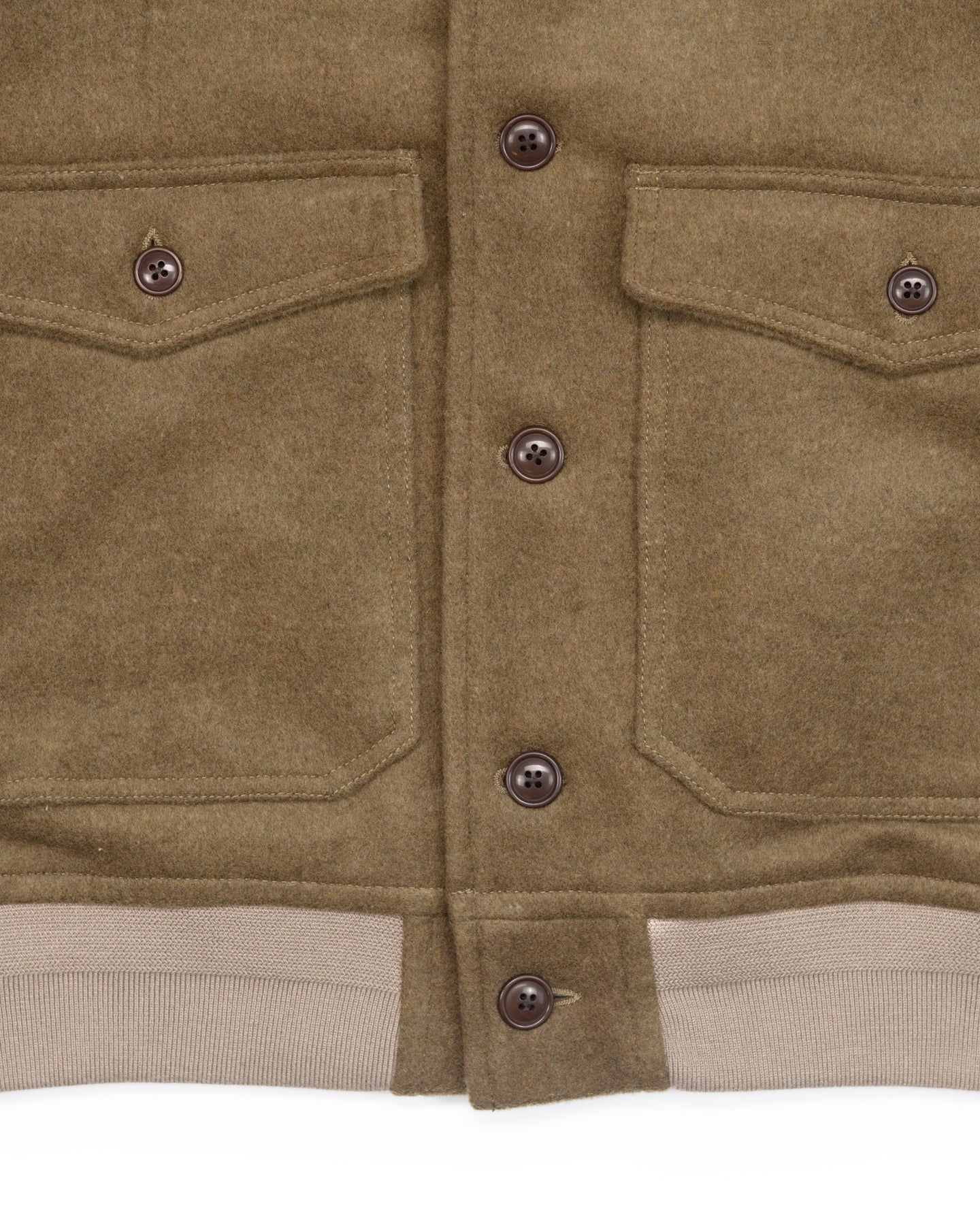 A very handsome looking bomber jacket in a wool blend. The jacket is not lined, but has a nice substantial weight to it, making this a great option for the cooler months.