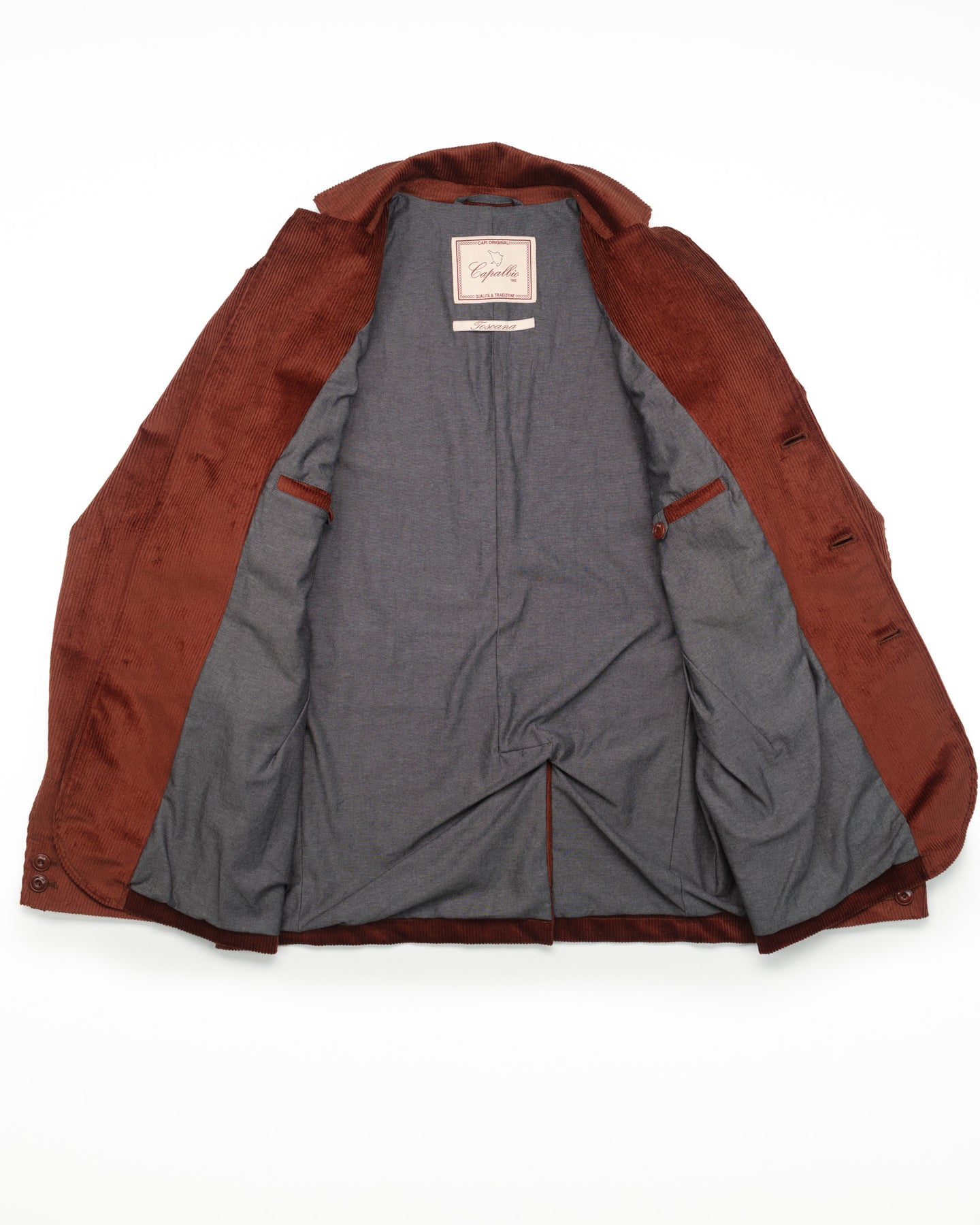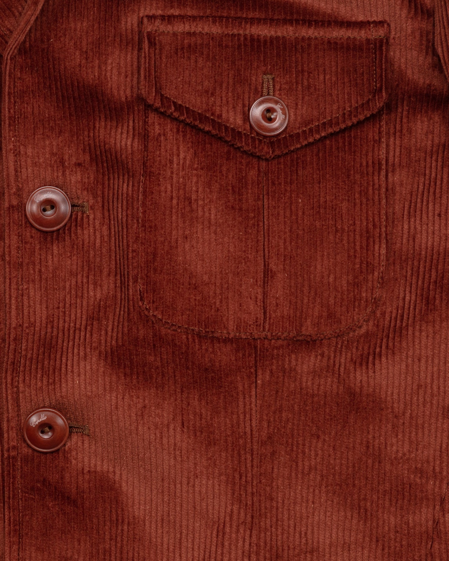 The Collina Jacket in Rust Corduroy is a field jacket inspired by traditional hunting wear. In a beautifully rich rust corduroy and accented with corozo buttons this is perfect for the autumn months. Capalbio, a distinguished and historic Tuscan brand, originally specialised in apparel for hunters and rural workers. Today, they maintain many of their classic designs while incorporating modern cuts and fits for contemporary wear.