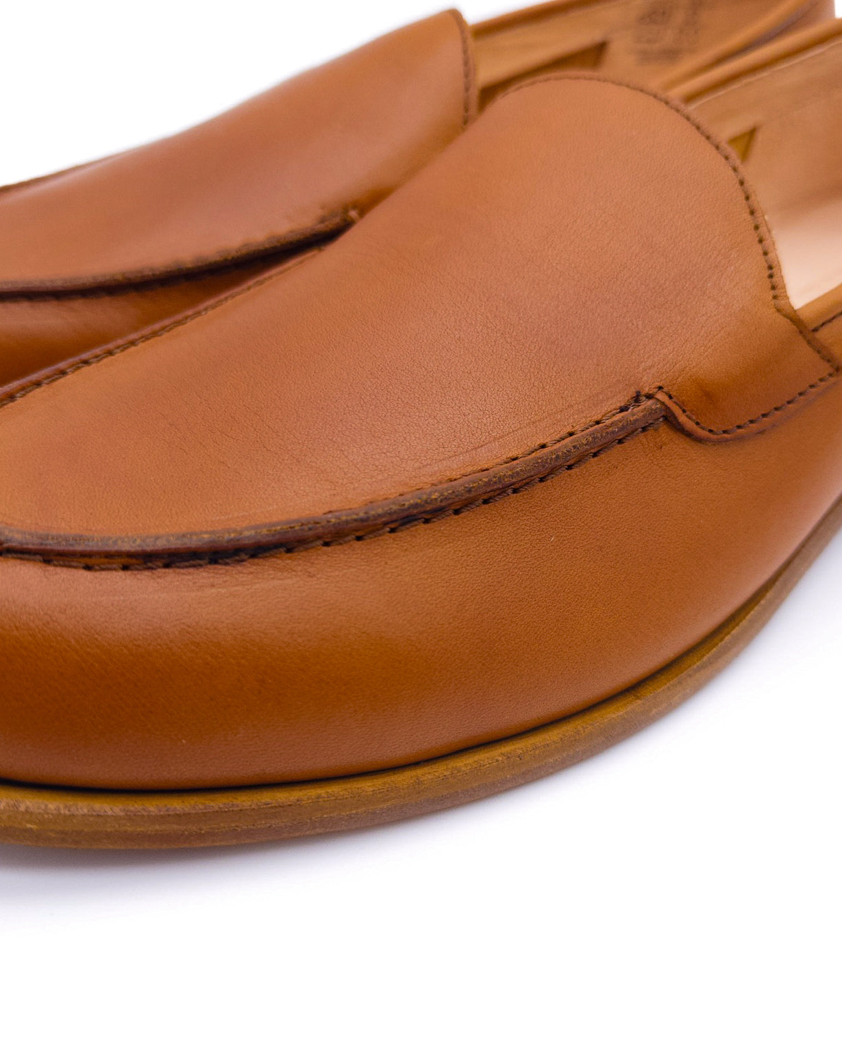 A leather loafer with a leather sole and rubber inlay to give more comfort and grip when walking.