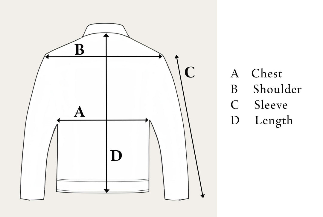 C. Sleeve* Measure from shoulder seam down to cuff end. (Some tops are measured from the centre of the neck down to the cuff)
