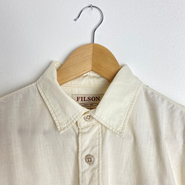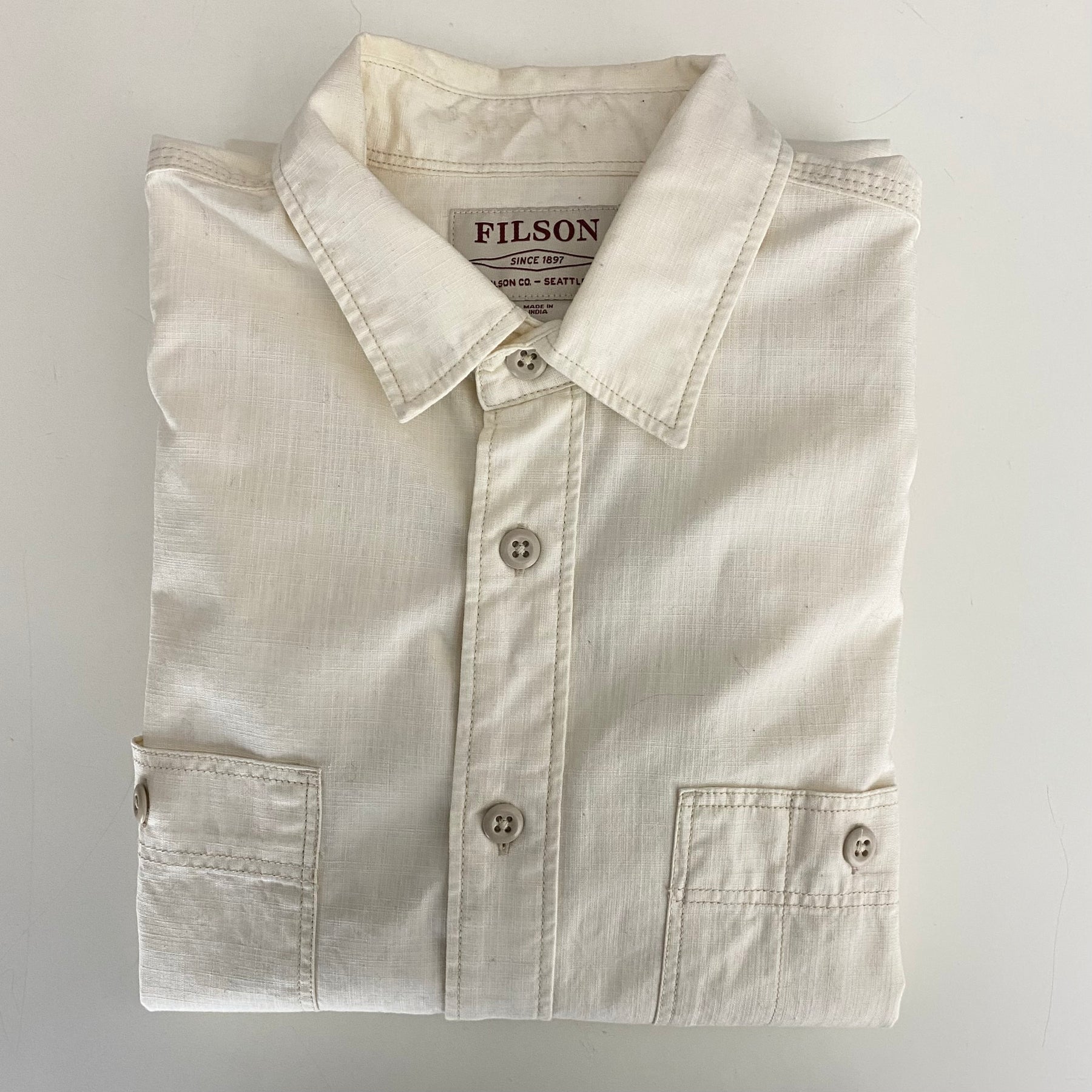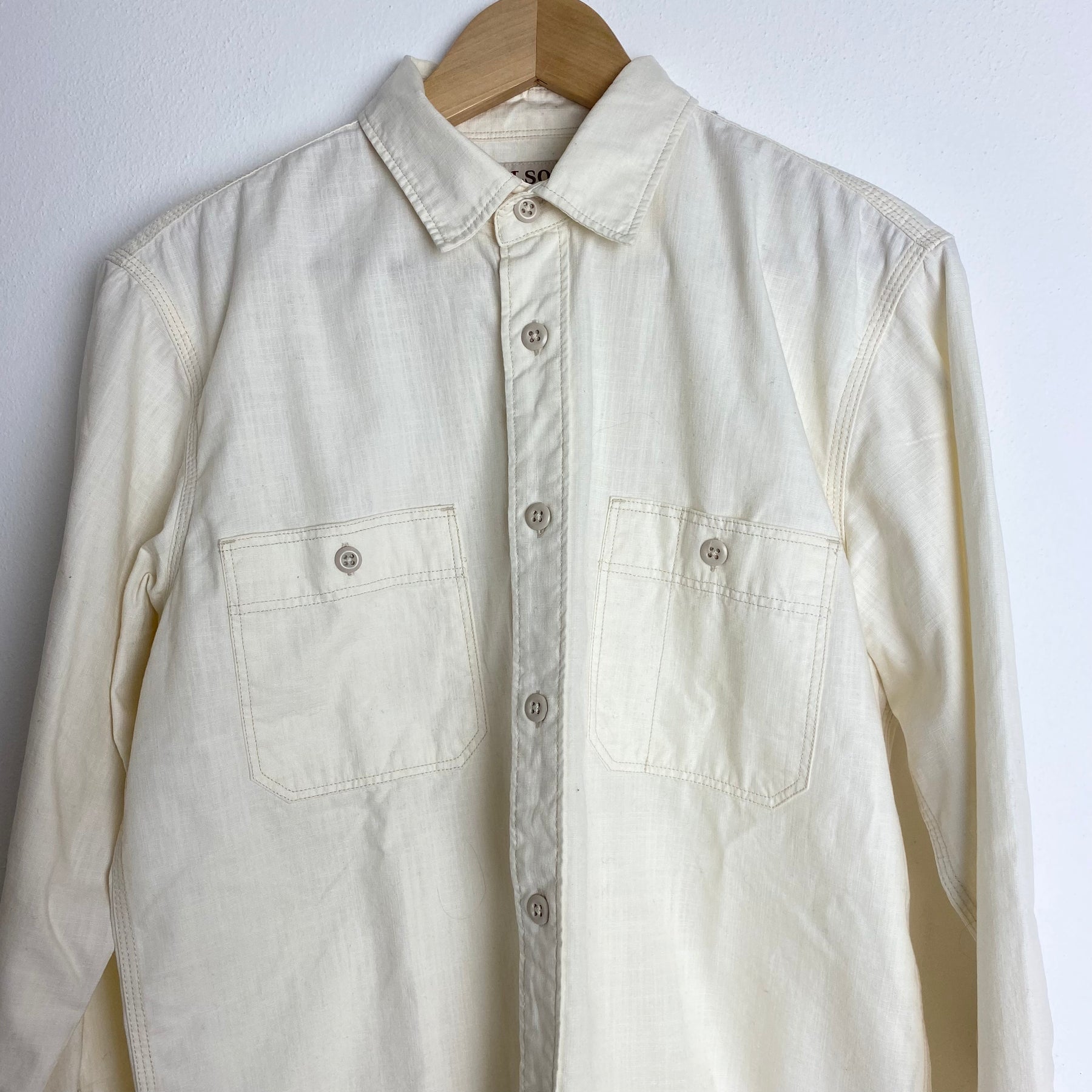 Absolutely love this ecru shirt from Filson with visible ecru stitching and two Patch Pockets  - comes in a Lightly Worn condition with no particular signs of wear.