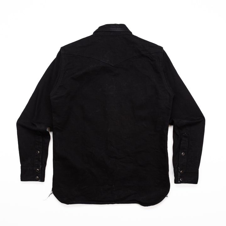 A sturdy black selvedge western shirt in a 14oz fabric.  Careful wear with some great looking fades on the front and back.