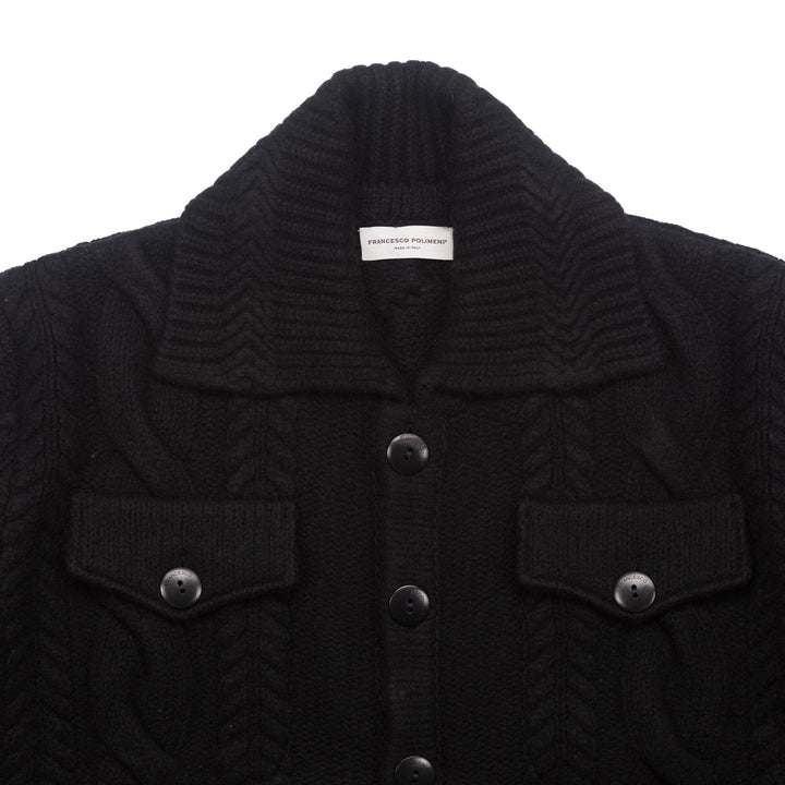 Francesco Polimeni is a small Italian brand from northern Italy that specialises in creating truly spectacular knitwear jackets. This jacket has some pretty incredible knit patterns, that are subtle due to the black colour, but really show a high level of craft in making intricate wool pieces.