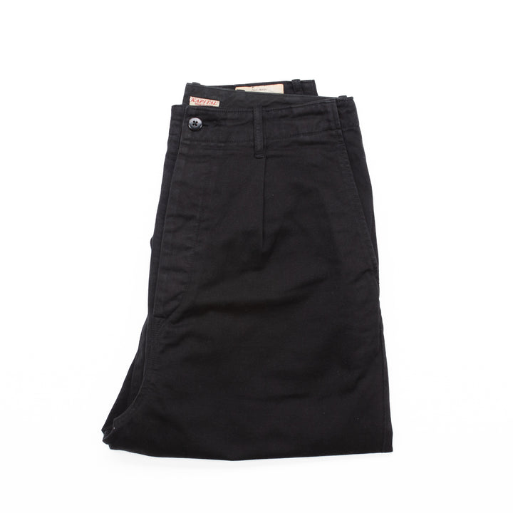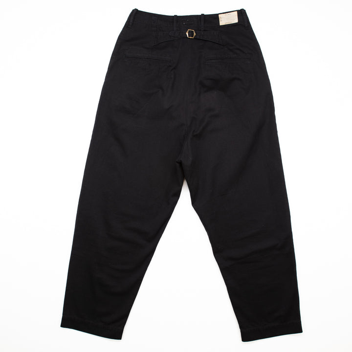 A wide-legged pant in black cotton from Japanese brand Kapital.  In good condition with only light wear.