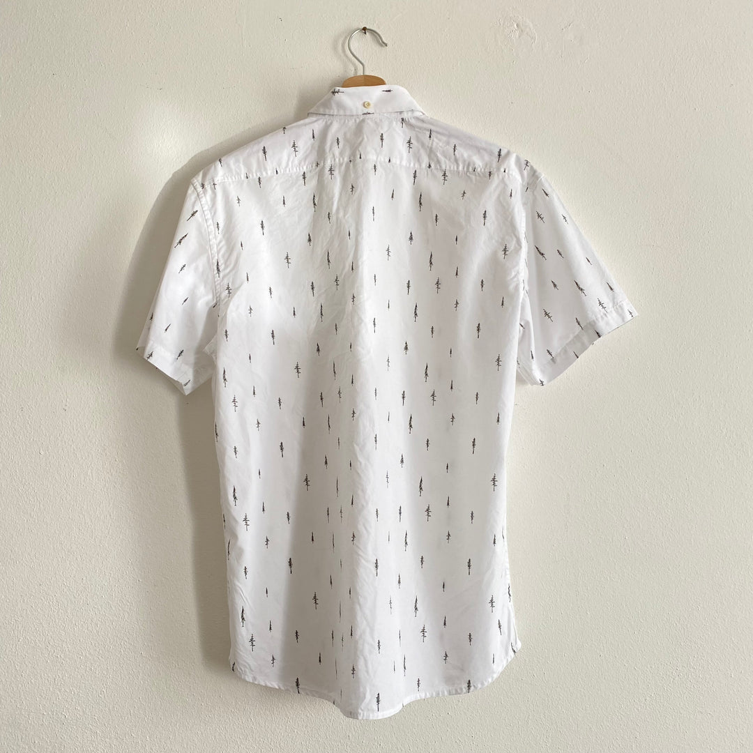 The Shirt is 'Lightly Worn' but it has a faint yellowish small mark on the front pocket - see images