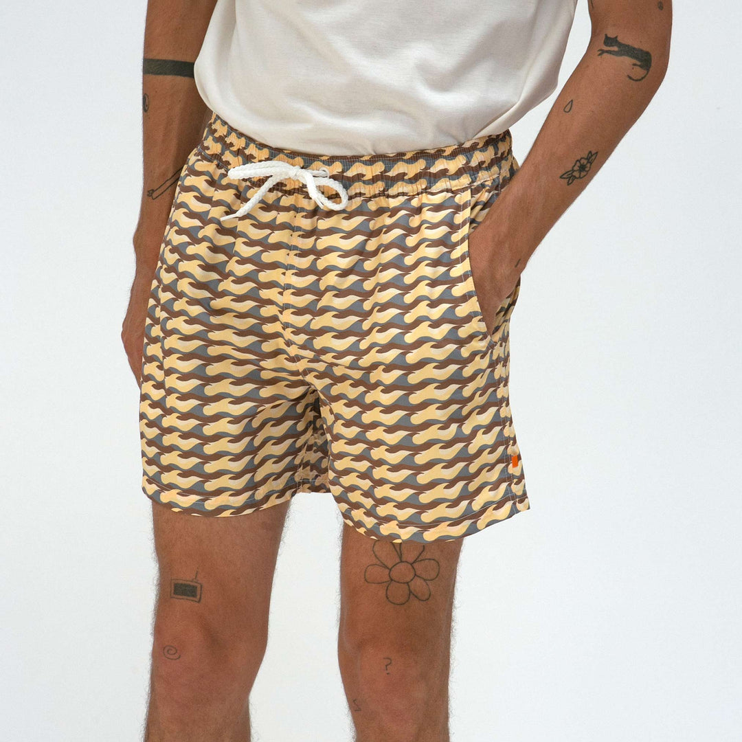 Drawstring swim shorts that are good for the planet and your image. Made from a lightweight, quick-dry fabric that’s crafted from recycled plastic bottles. These beauties feature two side seam pockets, a pocket on the rear, soft mesh lining, and a drawstring waist.