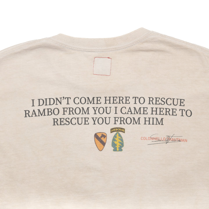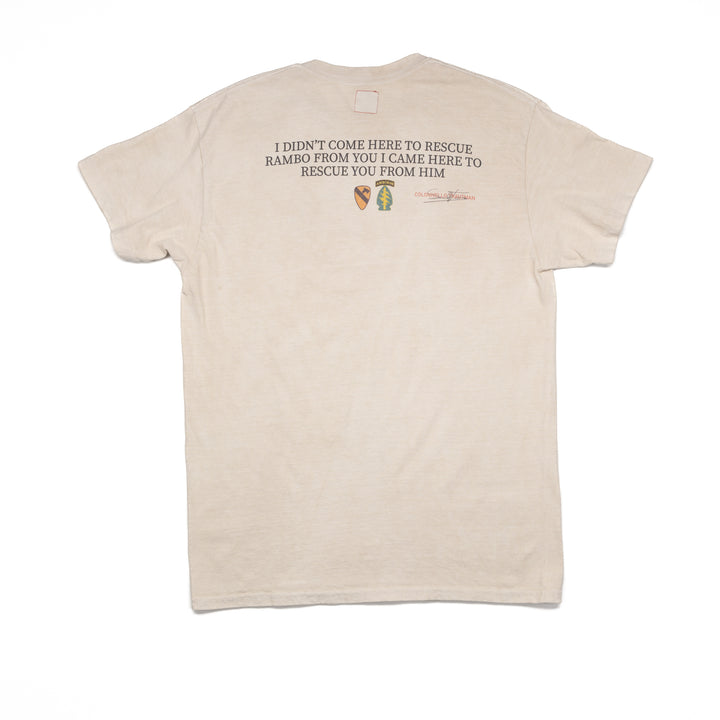 For those who remember, this Tee was inspired by the 1982 film First Blood.  John Rambo steals a motorcycle - and yes for the motorbike nerds, the actual bike in the film was the XT 250, not the 500 - but let's not break the fantasy.  The back of the Tee features the famous quote from John Rambo's commanding officer Colonel Sam Trautman.